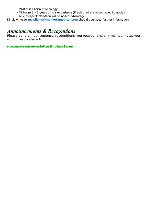 I aim to help people who are facing psychological or emotional difficulties to overcome their difficulties. Malawi malaysia maldives mali malta marshall islands mauritania mauritius mexico micronesia moldova monaco mongolia morocco mozambique myanmar namibia nauru nepal netherlands new zealand nicaragua niger nigeria. Central to the practice of clinical psychology is the use of psychological testing and psychotherapy. The masters in counseling programme covers all the main areas of study required of a professional counsellor. Visit the international students section on our website to find out the latest news and everything you need to know about studying in malaysia. The national university of malaysia / universiti kebangsaan malaysia (ukm). After a diagnosis, clinical psychologists treat and help patients manage chronic conditions or personal difficulties. Depression, eating disorders however, in order to become a psychologist, you will need to obtain at least a master's in a specialised field of psychology, such as clinical psychology. Clinical psychology master's programs place a heavy focus on research, theory, and practice. The entry into master of clinical psychology is quite competitive in many countries, and especially so in a malaysian context. There are currently no masters courses listed for this search, why not try: I am a british chartered clinical psychologist currently working in kuala lumpur, malaysia. Master's programs in psychology in malaysia.