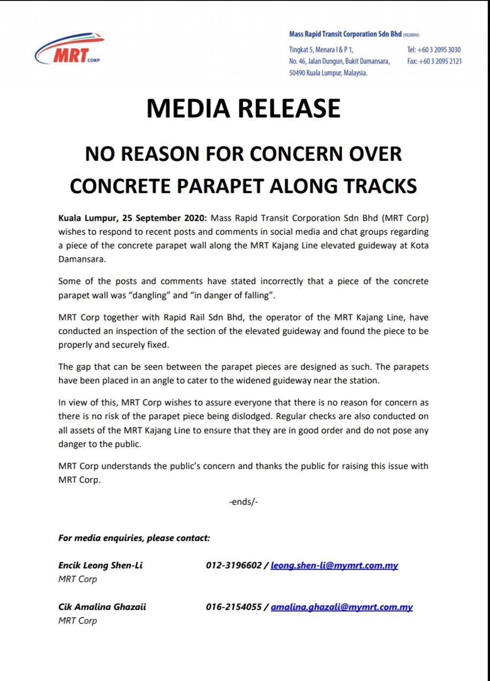 Mrt Corporation Sdn Bhd - Best Fbkl Kajang Line Concrete Parapet Pieces Designed As Such Mrt Corp / Check spelling or type a new query.. Maybe you would like to learn more about one of these? We did not find results for: Check spelling or type a new query.