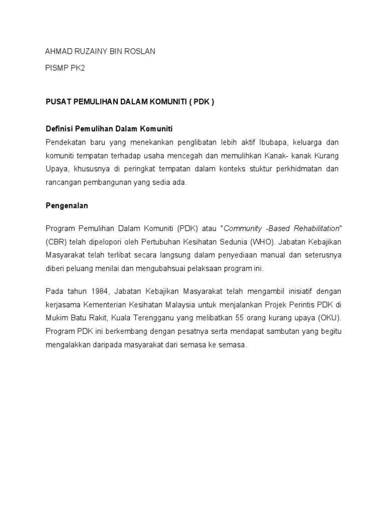 To start viewing messages, select the forum that you want to visit from the selection below. Prin prinsip2 sip2 yang mend mendasari asari pertu pertubua bu<b>ann pdk. The disease severity in the. Contextual translation of pusat pemulihan dalam komuniti (pdk) into english. See more of pusat pemulihan dalam komuniti mambong on facebook.